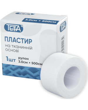 Пластир медичний в рулоні Тета, на тканинній основі, 3.0х500см, білий.